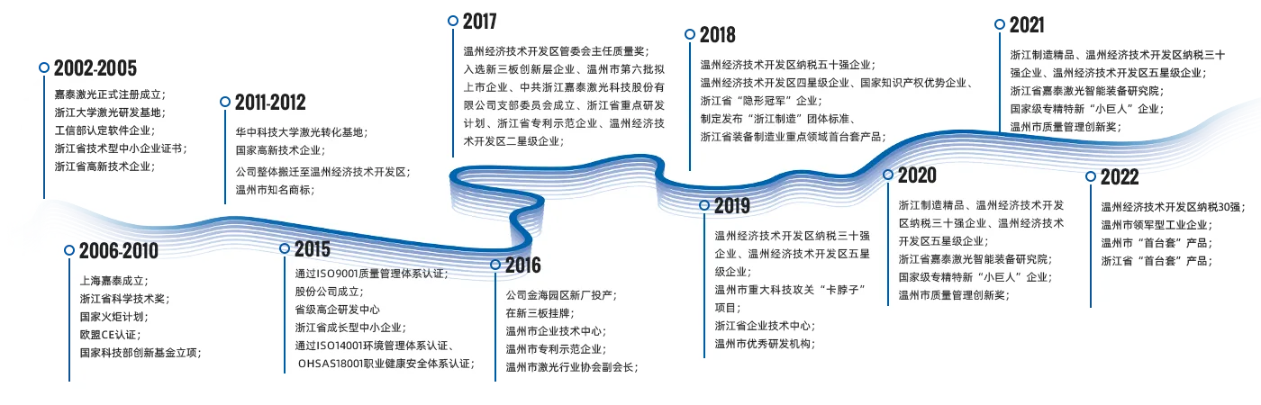浙江嘉泰激光科技股份有限公司成立于2002年,总部位于浙江温州经济技术开发区金海园区,坐落于美丽的东海之滨,占地30亩;江苏宿迁大型激光装备全产业链智能制造园区占地280亩,总面积超20万平方米,是国内规模大、实力强的激光设备生产企业之一。